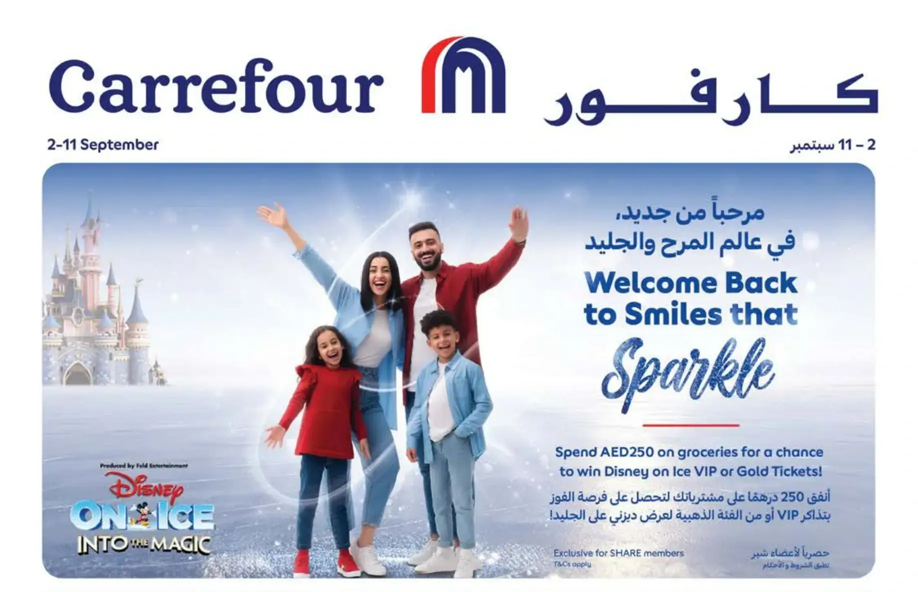 Imagine the look on your child’s face at Disney on Ice. That excitement is at the heart of Carrefour’s latest offer. The “Welcome Back to Smiles that Sparkle” offer is now running across all Carrefour hypermarkets in the UAE. It turns your regular shopping trip into a chance to win big.